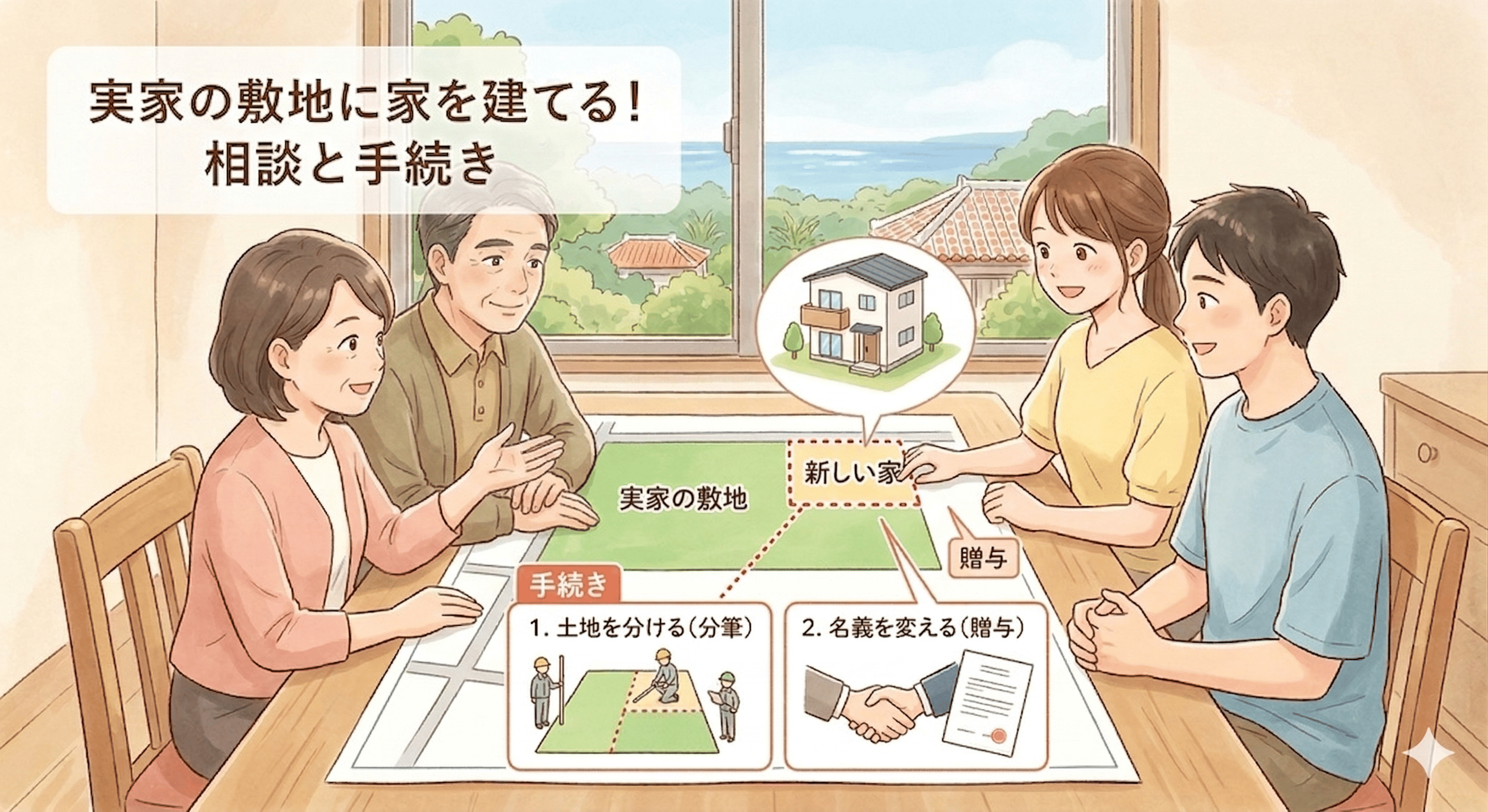実は、親の土地の一部に家を建てるには、「土地を分ける(分筆)」と「名義を変える(贈与)」という2つの重要な手続きがセットになることがあります。